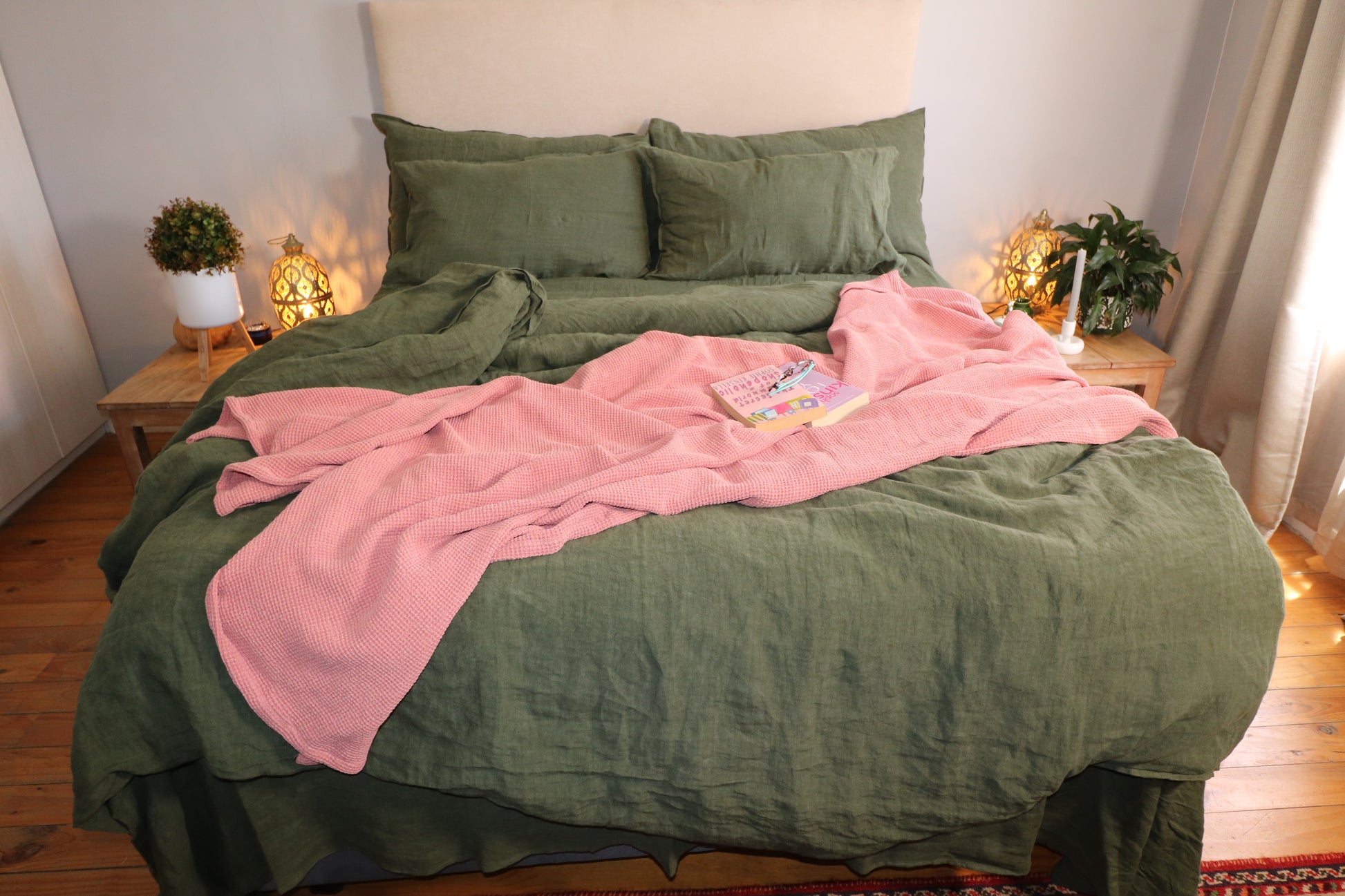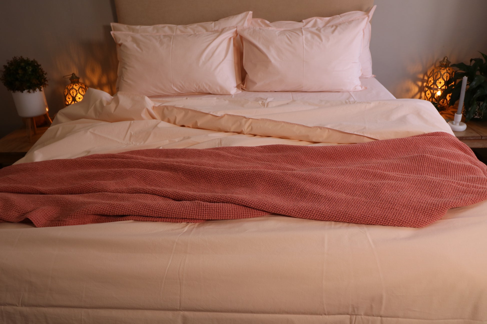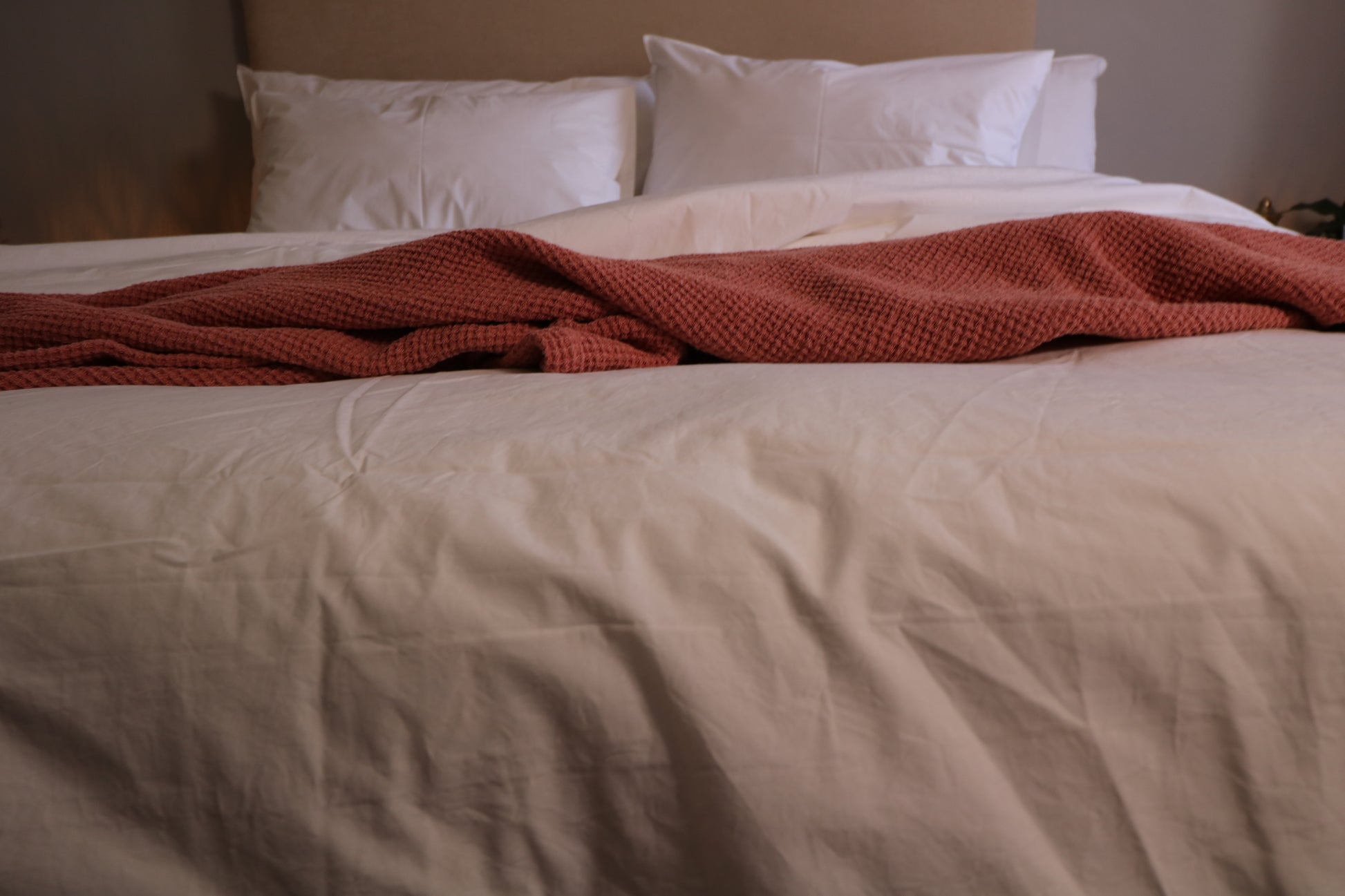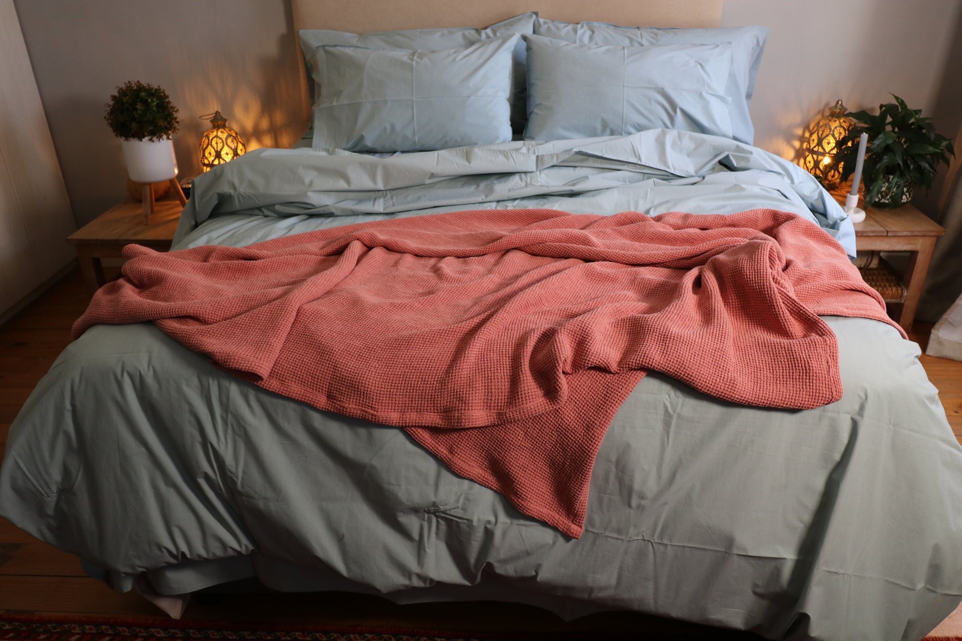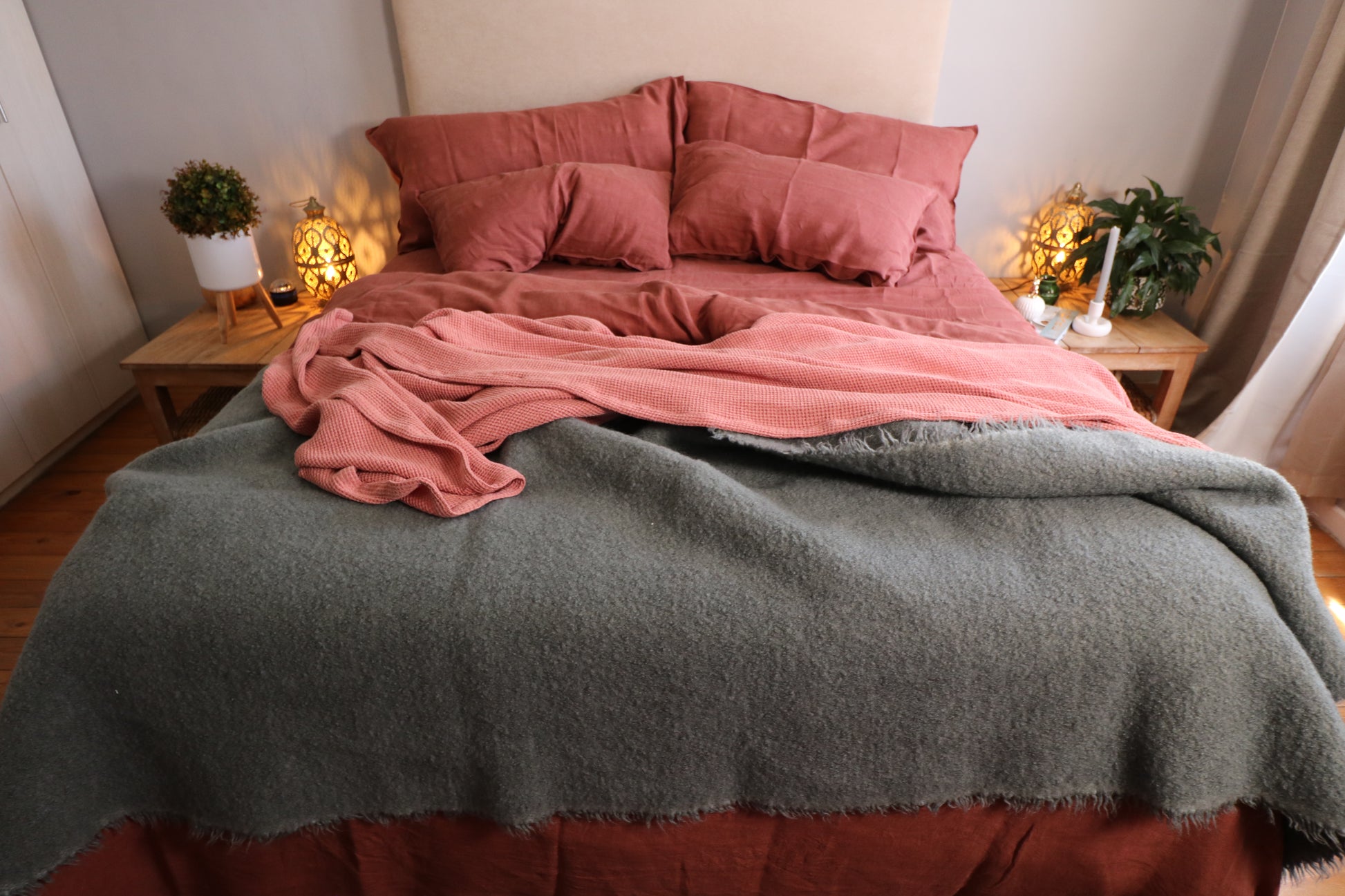 We have never met a Waffle we did not love. This is an exceptional throw because of its deep, sensual colour and comforting weave. Our throws are designed to generously cover the sides of the bed, at 2m wide. Hand made in Cape Town. We dip dye our throws in the colours which best enhance our own ranges of linen and cotton. Each throw is carefully chosen for its weave and texture and luxury.